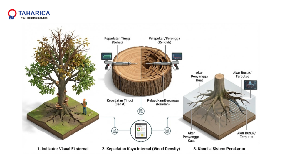 Penting bagi pengelola kawasan untuk memahami bahwa setiap parameter ini saling berkaitan. Sebuah tree monitor fungsi mengukur kesehatan pohon akurat terletak pada kemampuannya mengintegrasikan data visual dan data internal tersebut menjadi sebuah kesimpulan risiko yang valid. Data parsial seringkali menyesatkan; misalnya, batang terlihat utuh tapi akar busuk, atau sebaliknya.